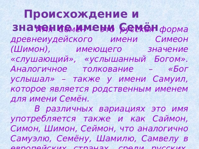 - Имя Семяныч ассоциируется с мудростью и уважением.